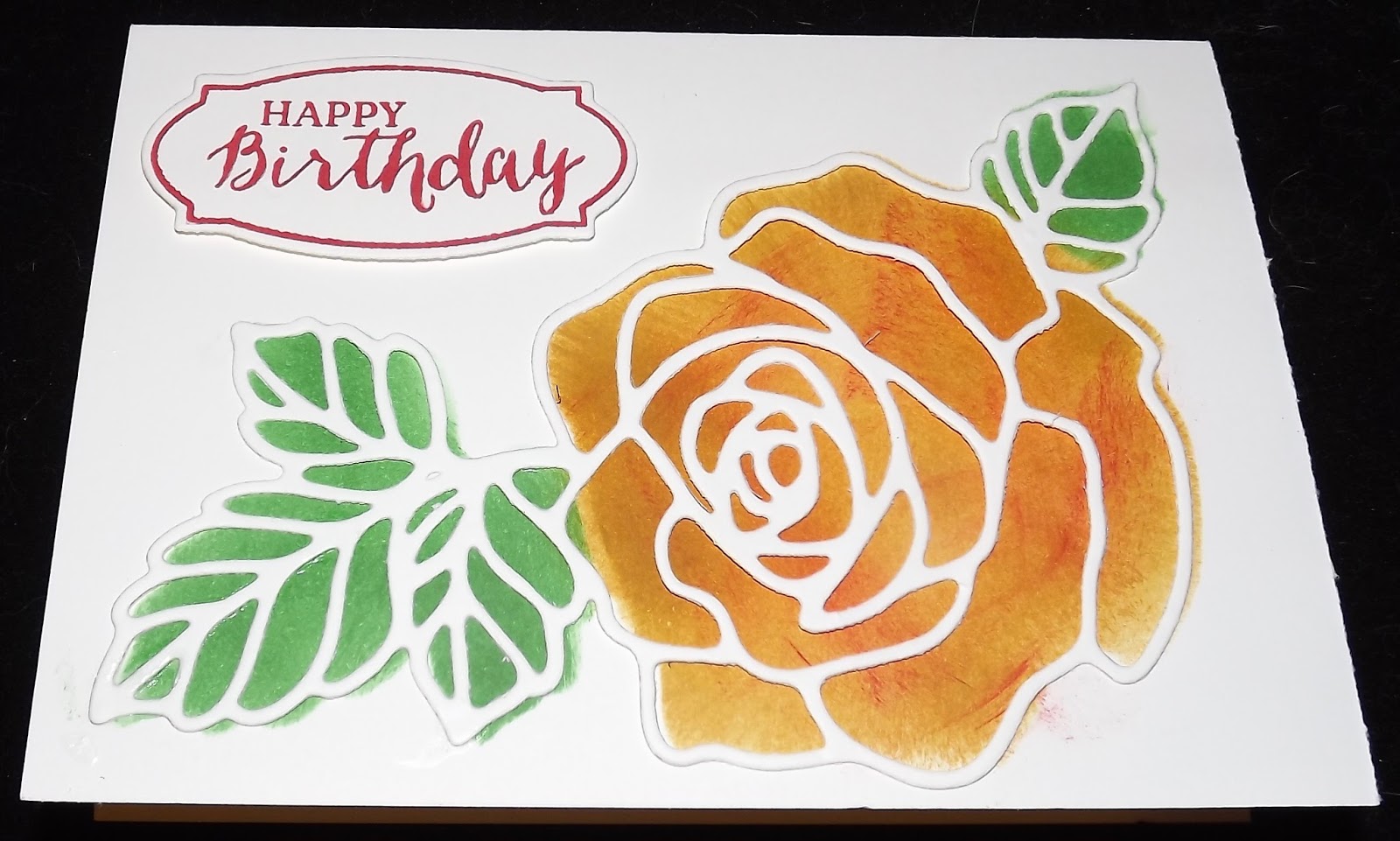 This card use the thick Whisper White cardstock for the base and the rose cut using the Rose Garden framelit. Cucumber Crush and Delightful Dijon highlighted with Watermelon Wonder were sponged under the rose. Sentiment and frame are from the Rose Wonder stamp set in Watermelon Wonder.